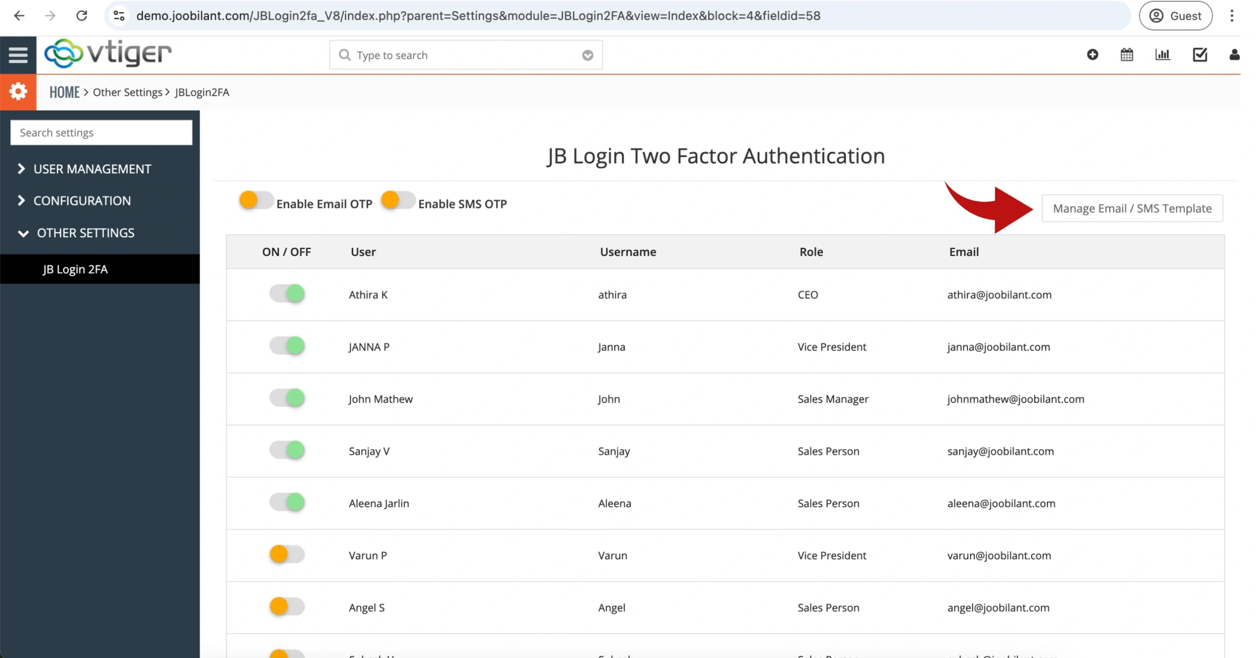 vtiger 2 fa is a most effective security, that enhances data security by requiring One-Time-Code for Vtiger CRM access. After the enabling of 2 FA, even if someone knows your username and password, they cannot log in without entering a passcode that sent to their email. This additional layer of protection surely reduces the risk of unauthorized access.