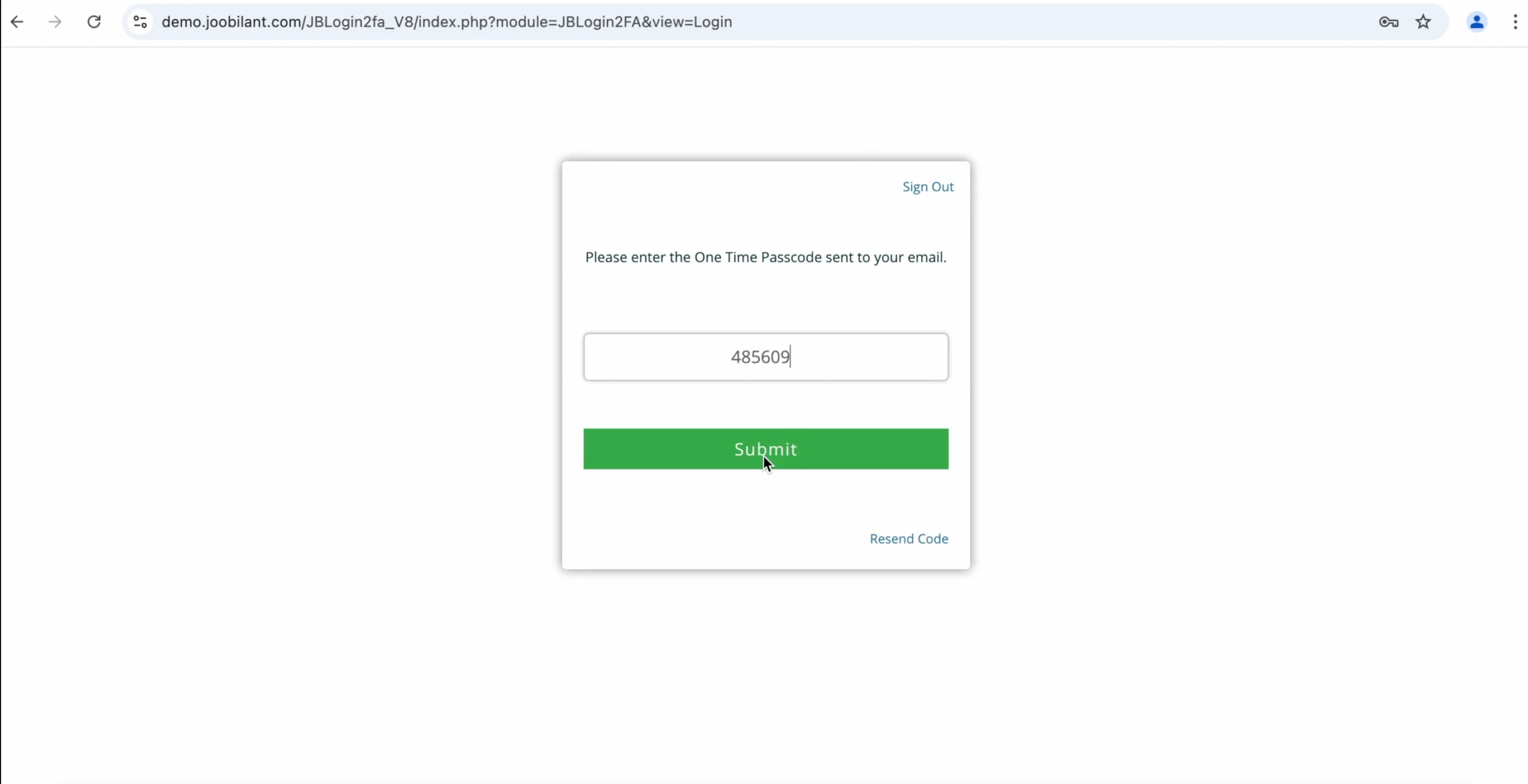 5. Enter the passcode that was sent to the user’s email inbox Or Via Text Message.