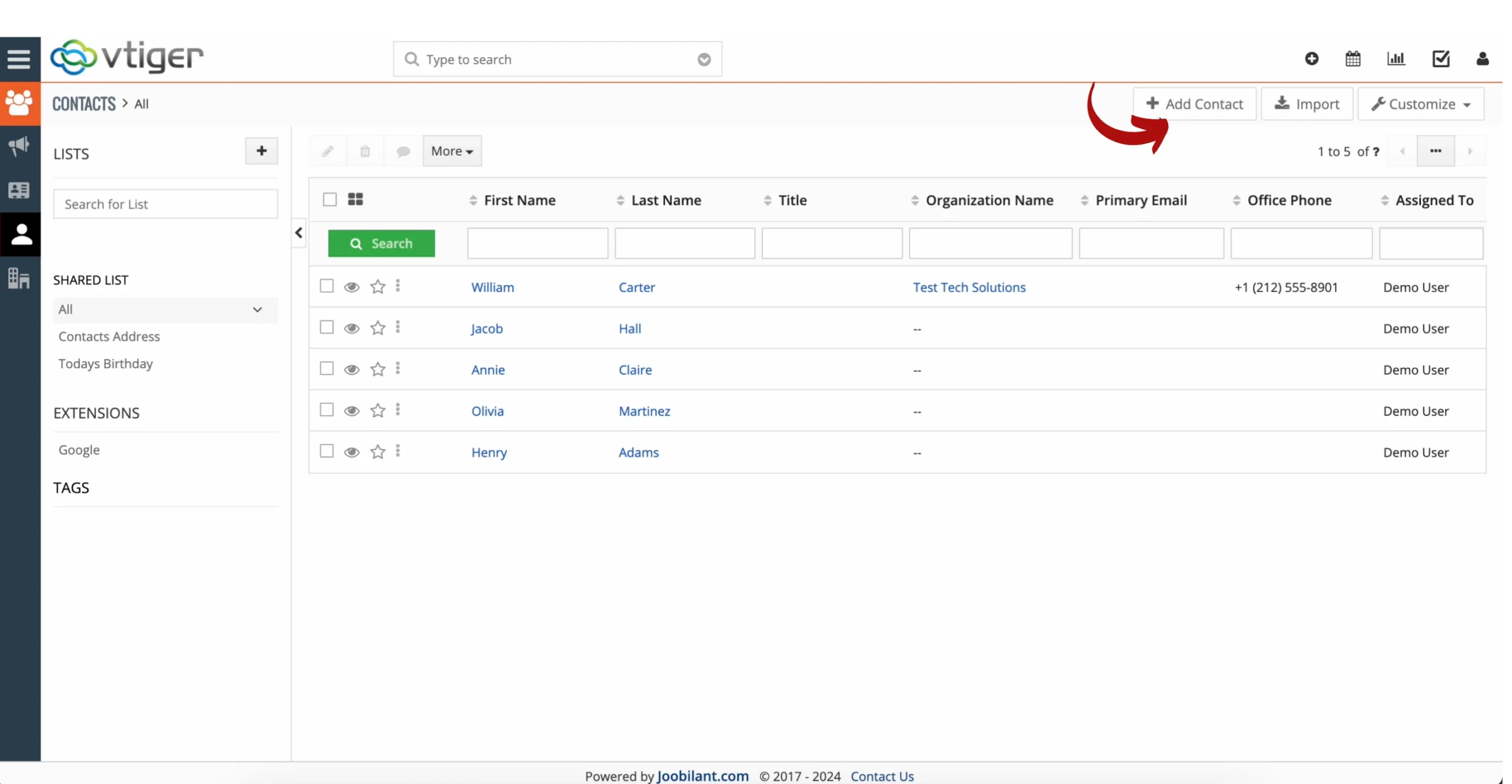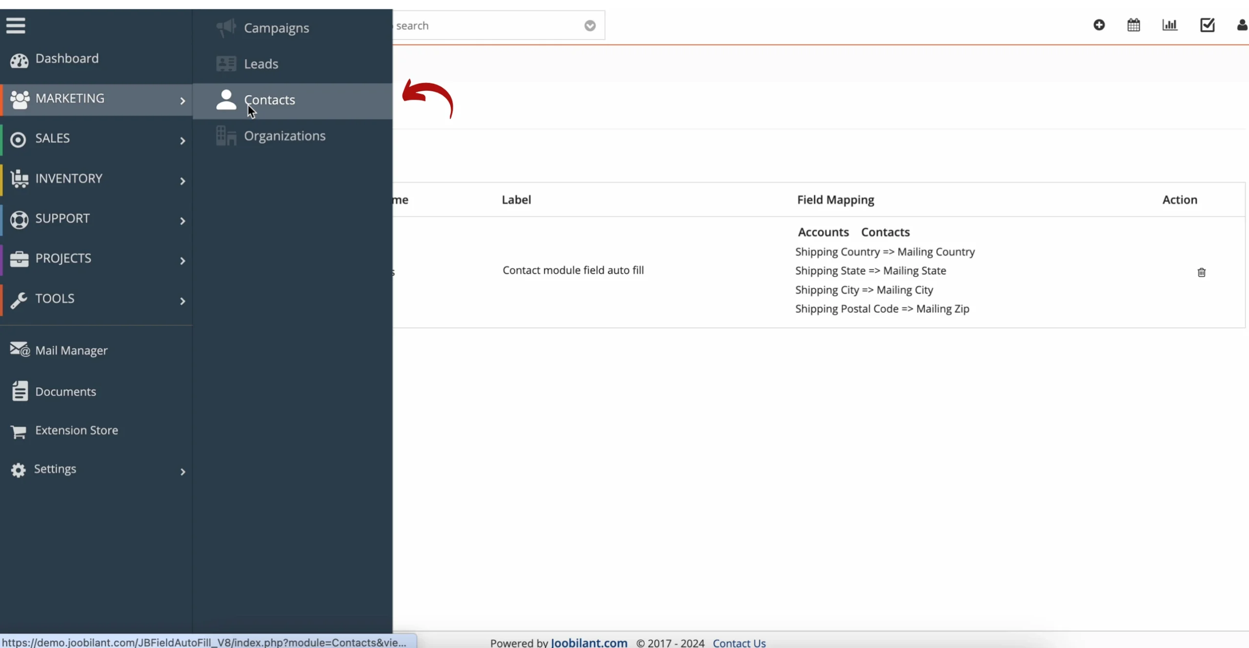 It works with all standard modules (Contacts, Leads, Opportunities, etc.) and custom modules.